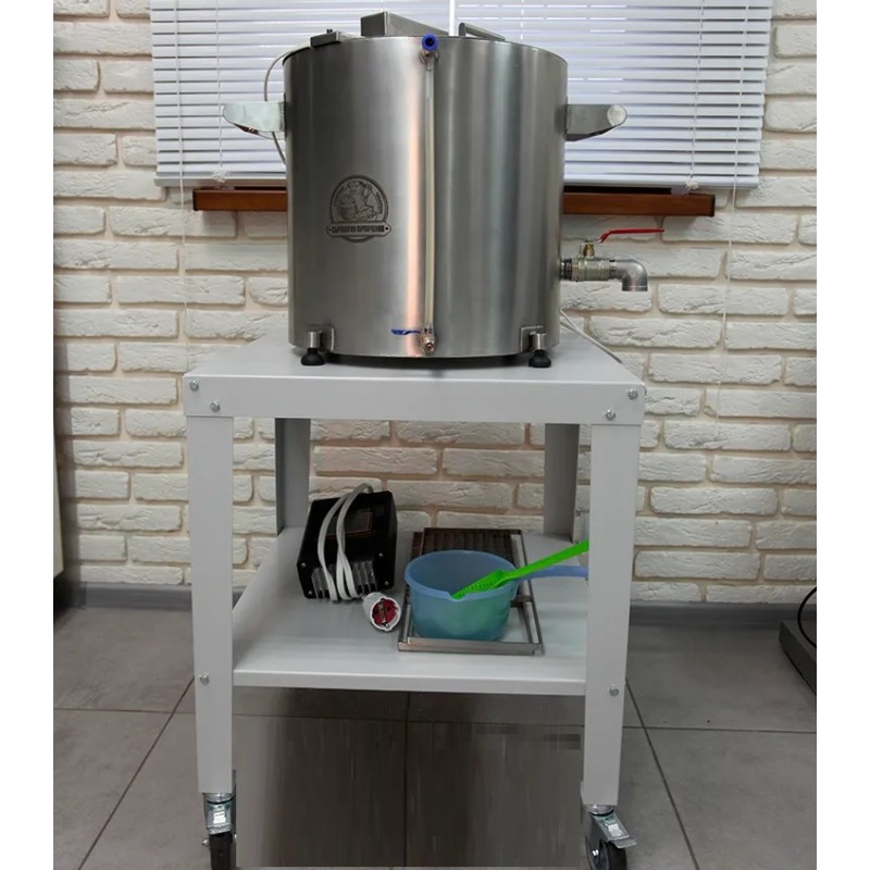 Стол-тележка для сыроварни — это универсальное и надёжное решение для комфортной работы с сыроварнями объёмом от 12 до 55 литров. Благодаря разборной конструкции и четырём колёсам, стол обеспечивает мобильность и удобство в использовании, что делает его идеальным выбором для любого сыроварного процесса.