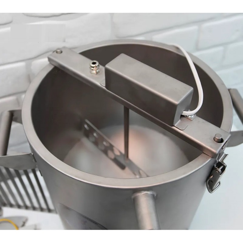 Возможность регулировать обороты мешалки от 0 до 30 об/мин и включать реверс с настройкой времени реверса позволяет проводить вымешивание и сушку сырного зерна в условиях, максимально приближенных к промышленным. Такой функционал делает процесс полностью автоматизированным и стабильным. Вы сможете получить идеальный результат, не тратя время на ручное вымешивание.