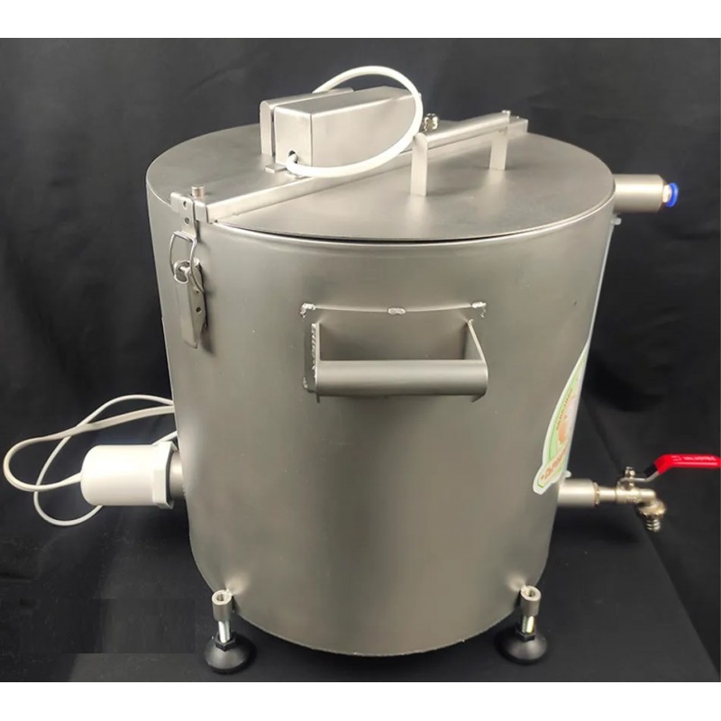 Корпус сыроварни выполнен из пищевой нержавеющей стали AISI 304, немагнитной и полностью безопасной для использования с пищевыми продуктами. Такой материал идеально подходит для работы в агрессивной среде, например в кислой среде сырной сыворотки, не вступает в реакцию с продуктами и не впитывает запахи. Толщина стали составляет 1,5 мм, что обеспечивает высокий уровень прочности, стабильность конструкции и долговечность. Благодаря такому качеству изготовления, домашняя сыроварня служит десятилетиями, сохраняя безупречный вид и надежную работу.