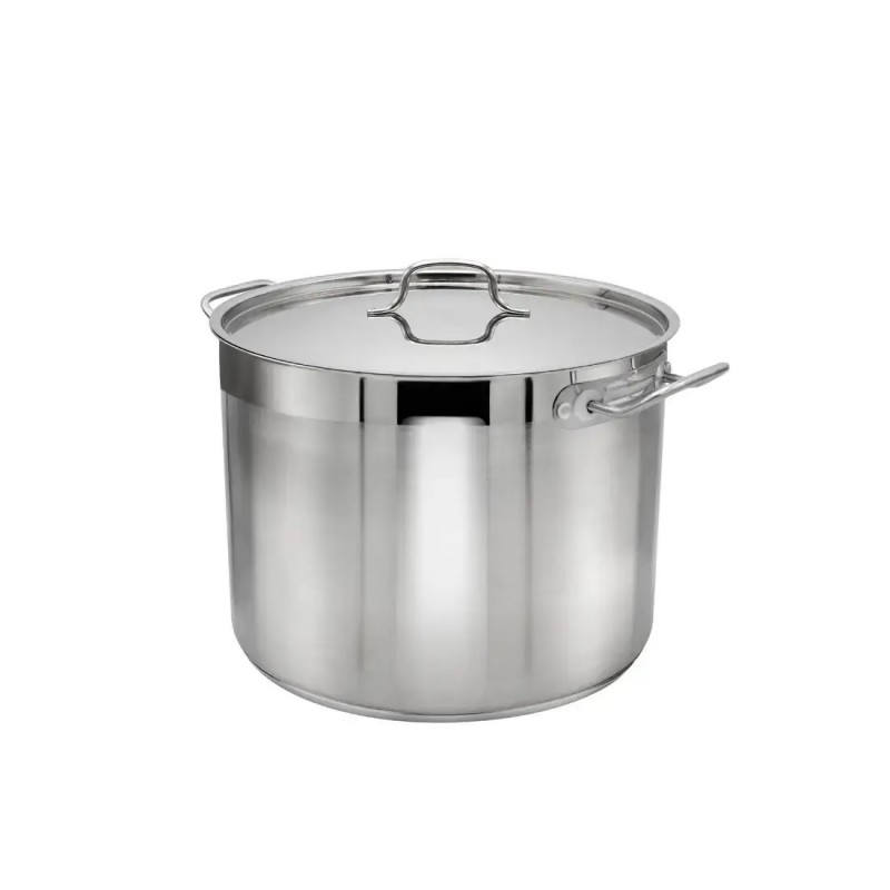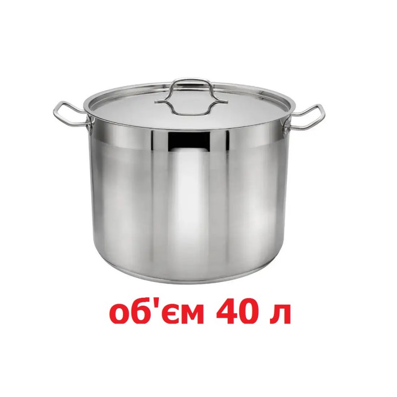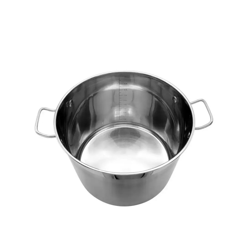 Каструля на 40 літрів виготовлена з високоякісної харчової нержавіючої сталі. На внутрішньому боці розташована зручна та добре видима мірна шкала для точного розрахунку об'єму та кількості інгредієнтів. Міцні ручки з надійним клепочним з'єднанням забезпечують безпечне використання.